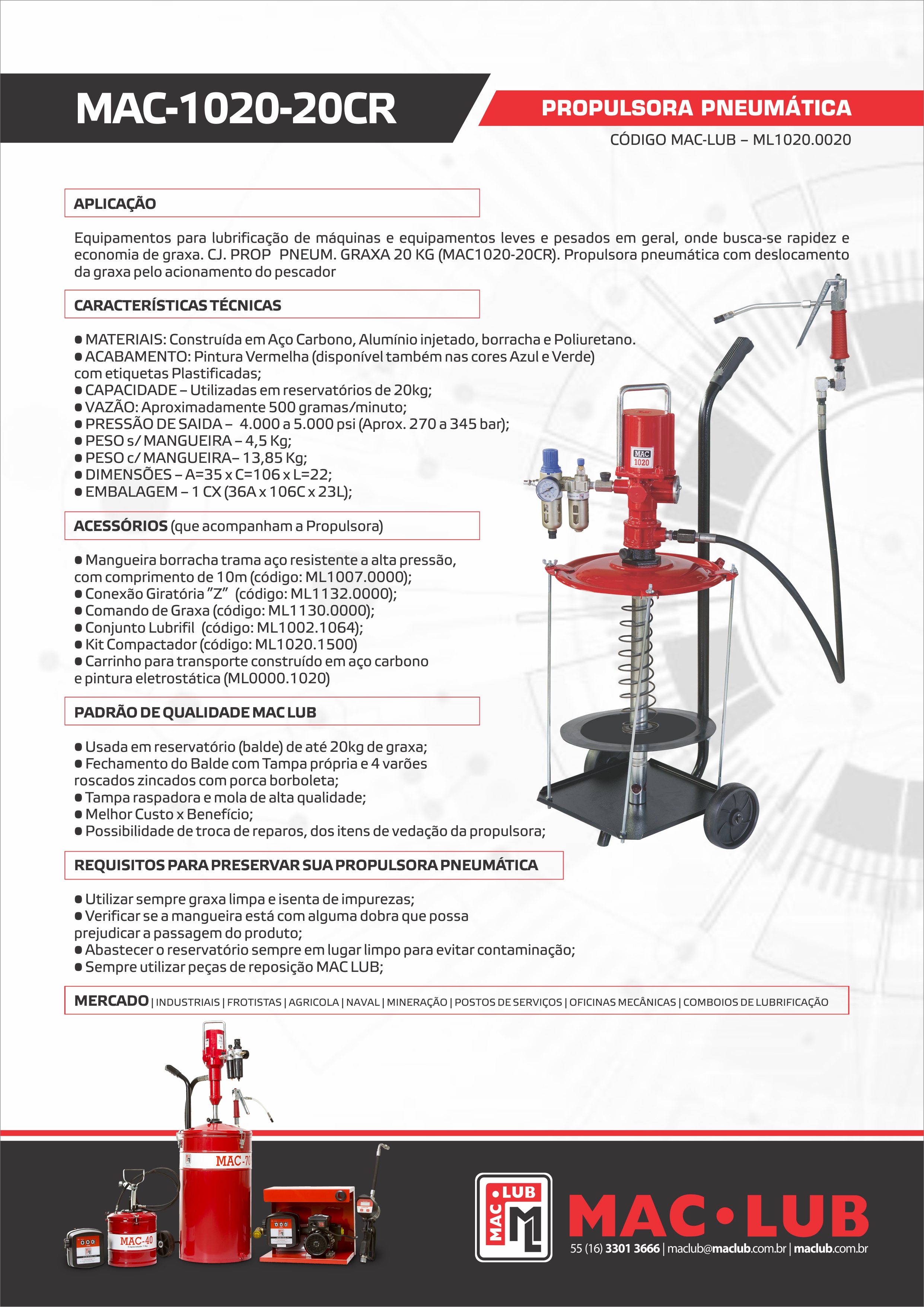 Utilizar sempre graxa limpa e isenta de impurezas. Verificar se a mangueira está com alguma dobra que possa prejudicar a passagem do produto. Abastecer o reservatório sempre em lugar limpo para evitar contaminação. Sempre utilizar peças de reposição MAC LUB